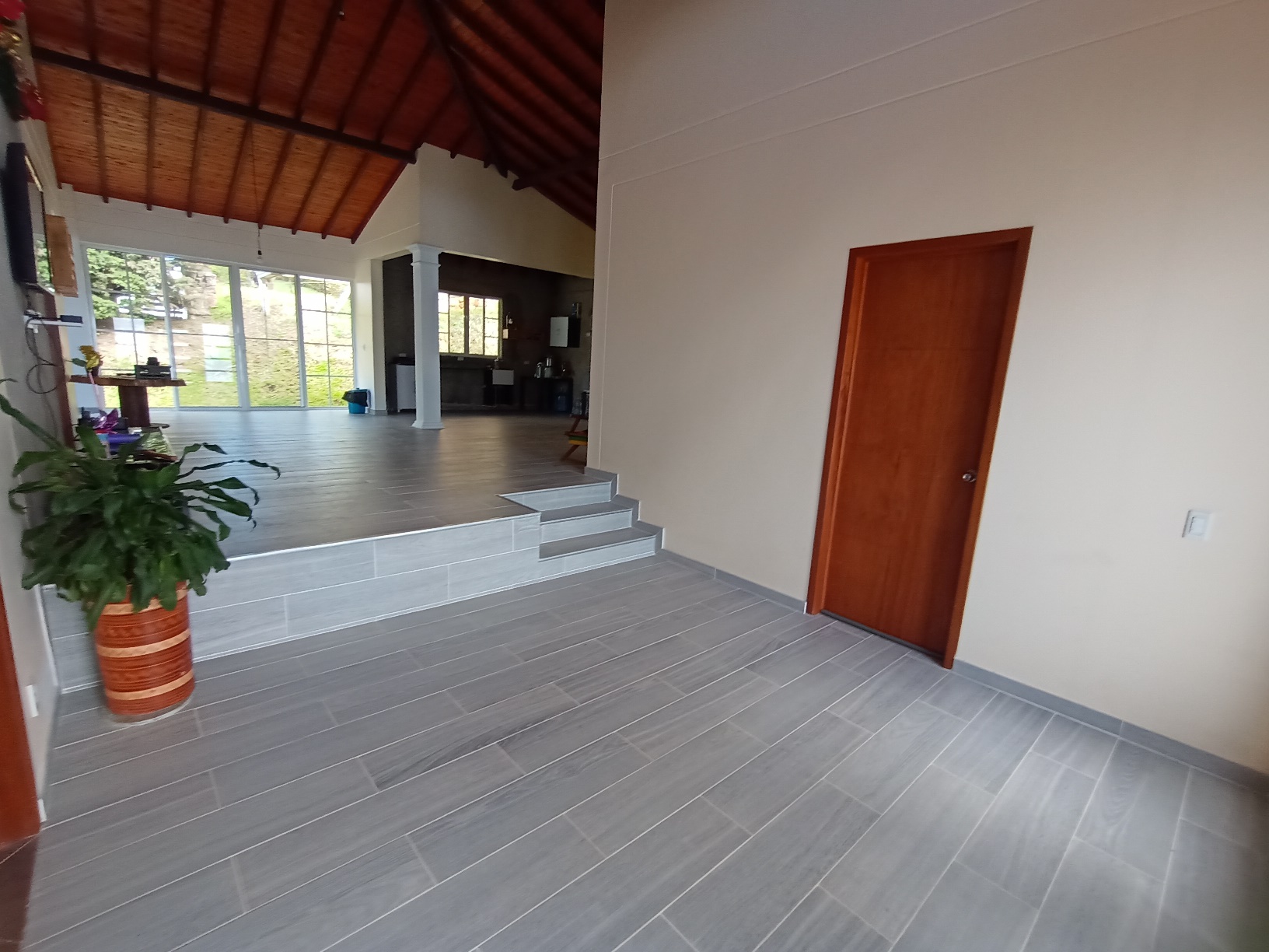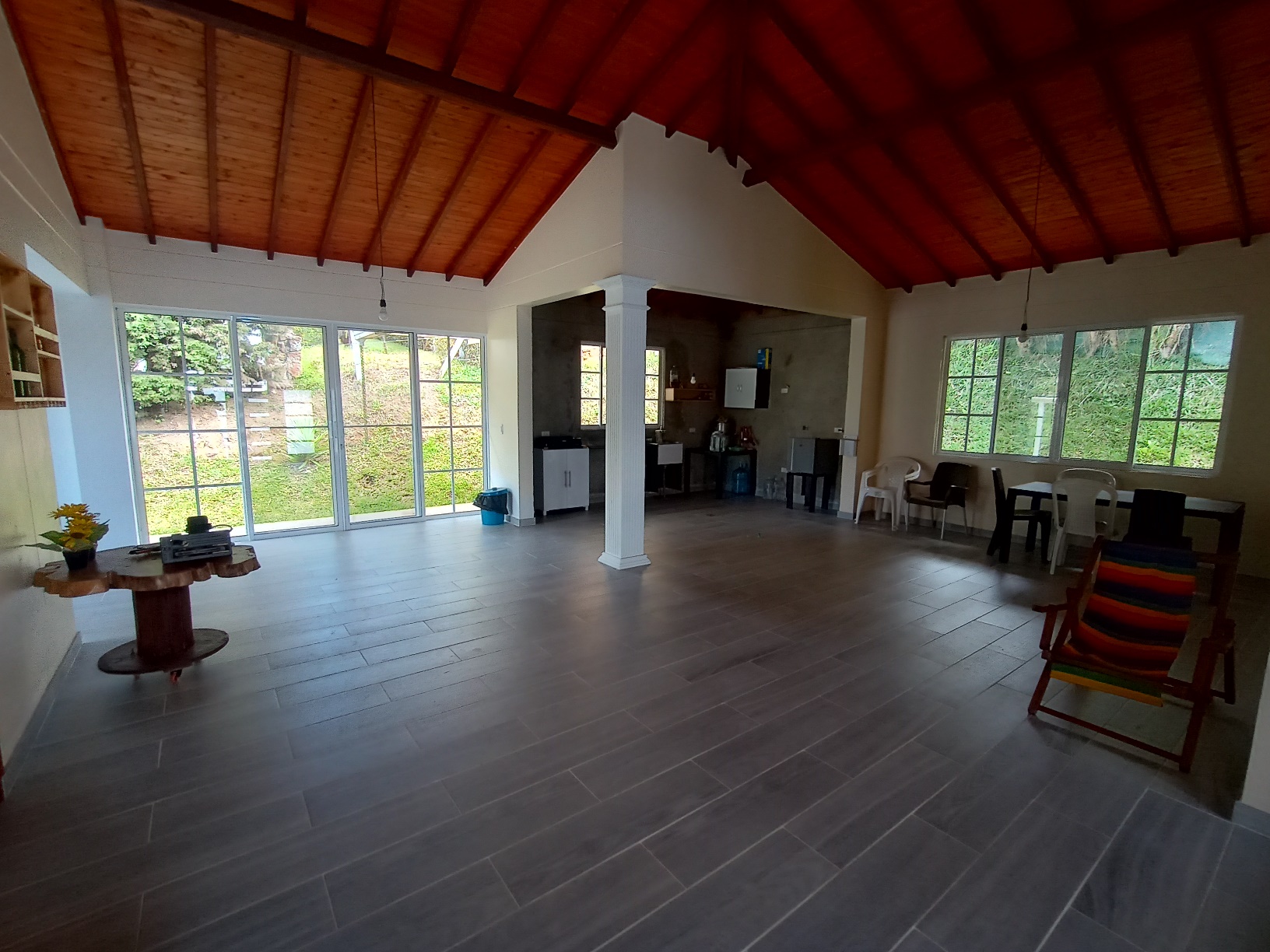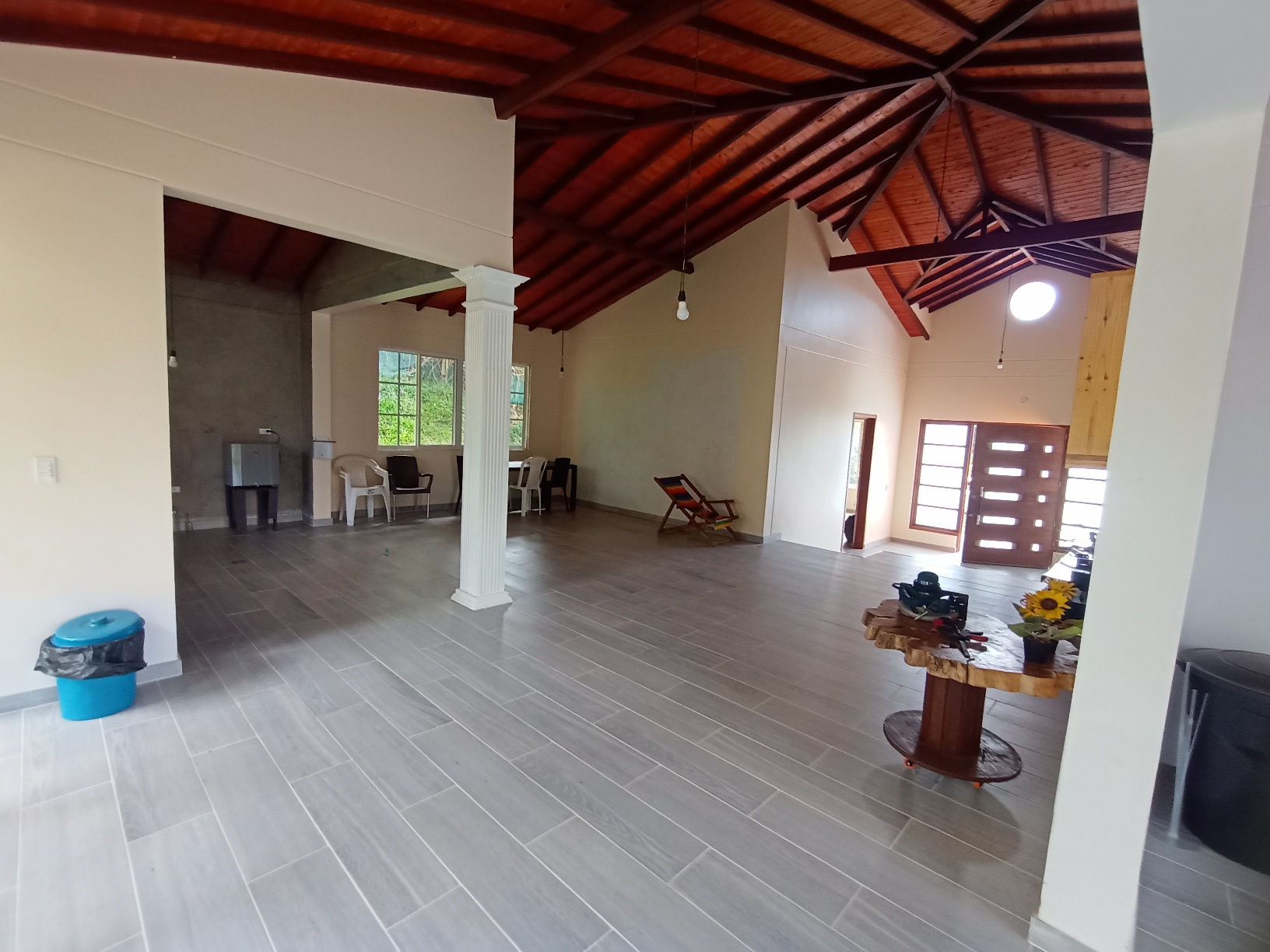 Techos altos en madera, machimbre en pino, teja de barro.